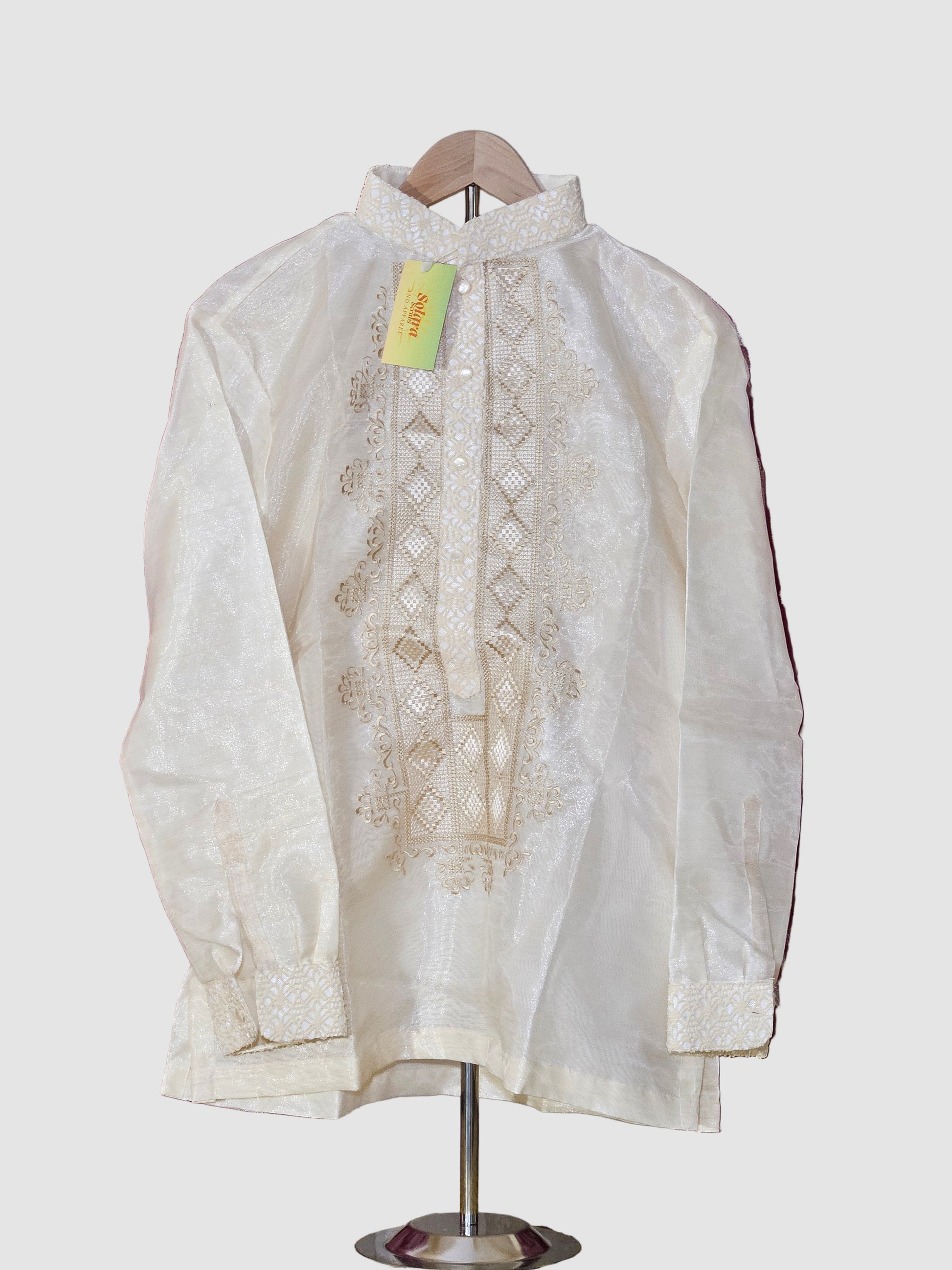 Cream Long Sleeved Barong Tagalog - Design 3